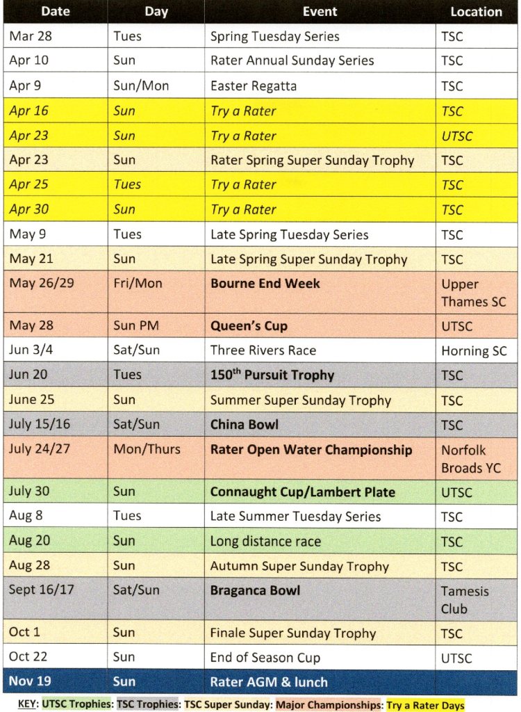 Email: rater.captain@thamessailingclub.co.uk for more information.